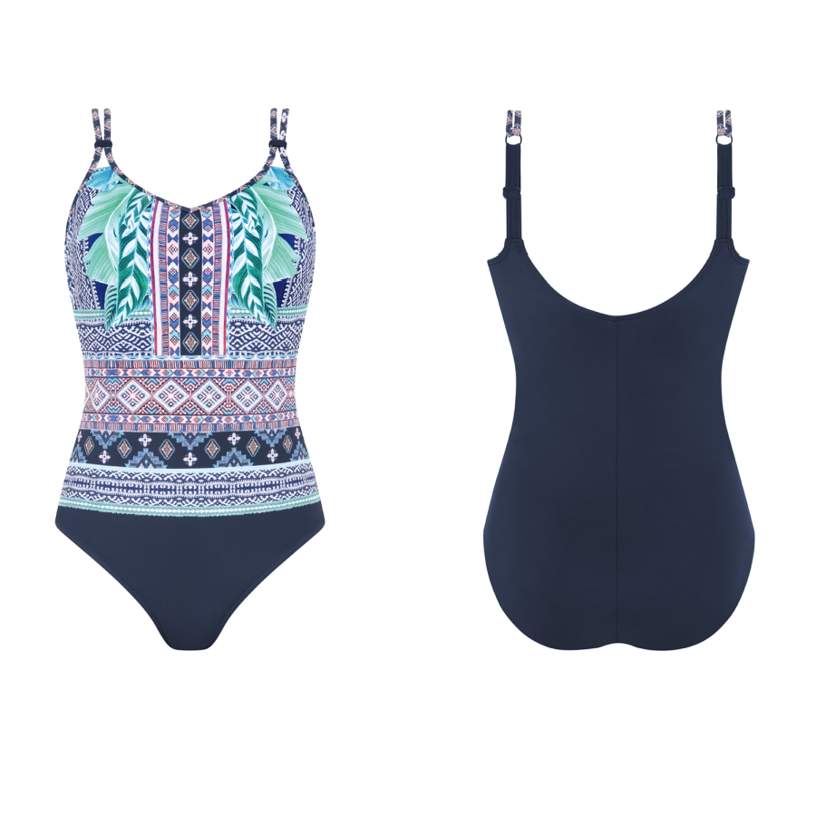 Amoena Boho Vibes prothese badpak geeft kleur aan je zomer. Het all-over veelkleurige bohemien ontwerp wordt gecombineerd met geometrische allover print.