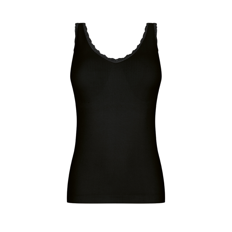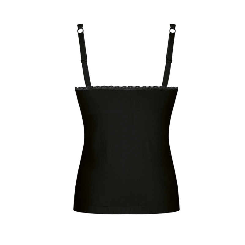 Amoena Kitty prothese top -Zwart , een comfortabele en zachte naadloze top, met voorgevormde verwijderbare cups en verstelbare schouderbandjes.