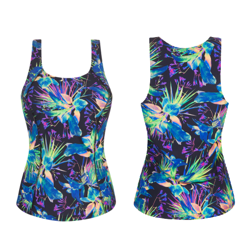 De Amoena Lagos Prothese Tankiniset maakt deel uit van een speciaal assortiment textiel en badmode van Amoena die druk verlichten bij lymfoedeem.