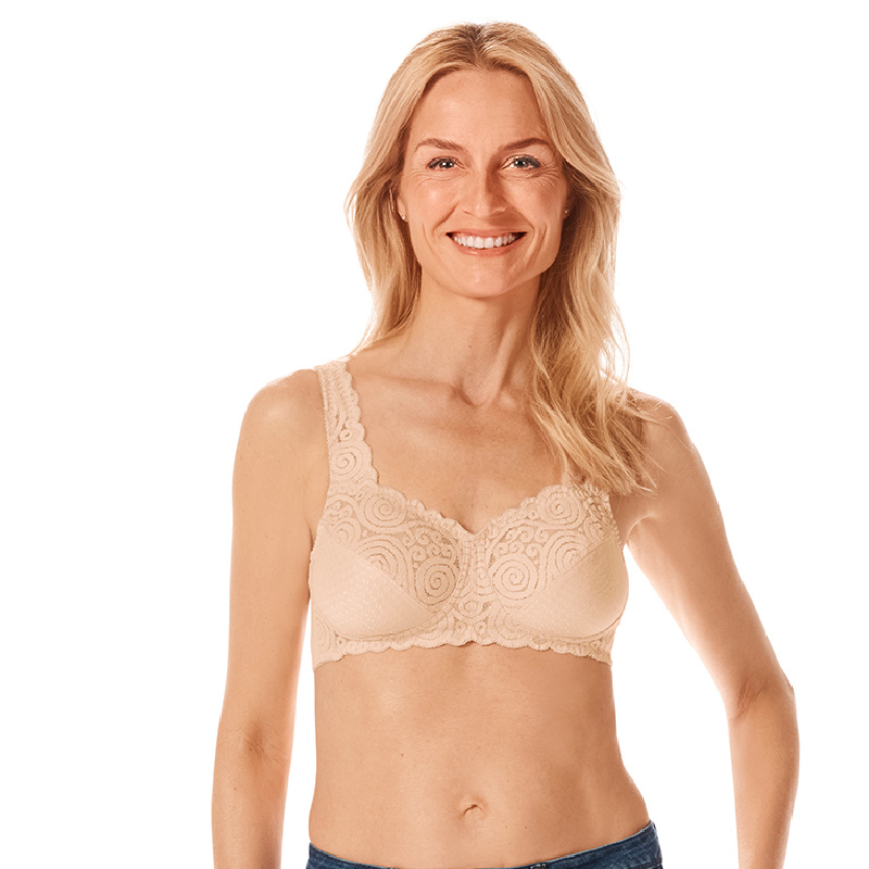Ontdek de vernieuwde Amoena Prothese bh Jasmin – Blush: een prachtige toevoeging aan je lingeriegarderobe in een zachte blush-kleur. Deze bh zonder beugel combineert elegantie met comfort, met een lichtgewicht ontwerp gemaakt van katoenen kant met stretch.
