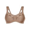 De Anita Prothese bh Sophia 4709x heeft een moderne uitstraling en zit daarnaast ook nog eens perfect. De prothesebh Sophia slaat altijd een goed figuur. Met het puristische bloemenborduursel op semitransparant tule in de bovencup oogt hij licht en luchtig en zit tevens als een tweede huid. De cup in vier delen met elastische randen in het decolleté en armsgat geven een prettig en veilig gevoel bij het dragen. De brede comfortschouderbandjes werken verlichtend.