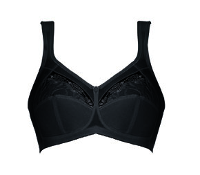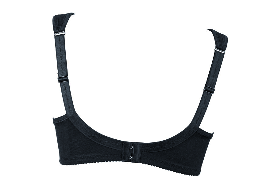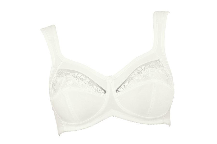De ontlastingsbeha is uitgevoerd met brede gepolsterde schouderbanden, die de rug en nek aangenaam ontlasten. Het in het decolleté verwerkte, transparante borduurwerk is in het cupdeel niet-transparant gevoerd.