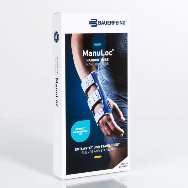 ManuLoc is een polsorthese die bij de diagnose van een carpaal tunnelsyndroom of na operaties en andere aandoeningen wordt voorgeschreven. De orthese immobiliseert de pols, maar laat een functionele grijpbeweging toe. Foute belastingen worden vermeden. De ademende materialen en luchtporiën zorgen ervoor dat de orthese bijzonder licht is en nauw aansluit. ManuLoc zit ook na uren nog zeer comfortabel.stabiliseert en beschermtlaat grijpbewegingen toelicht, nauwsluitend, huidvriendelijk en eenvoudig in gebruik