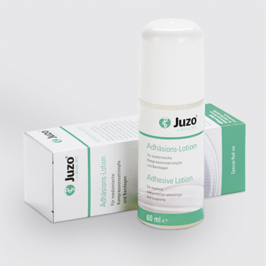 De Juzo Huidlijm – Adhesive lotion is de huidlijm voor het op zijn plaats houden van steunkousen. Geschikt voor zowel arm als been kousen. Gemaakt op basis van water is dus huidvriendelijk en gewoon met water te verwijderen.De lijm wordt met een roller op de huid gebracht. Gebruik een gebied rondom de bovenkant van de kous op onderbeen of bovenbeen tegen het afzakken. Dagelijks te gebruiken