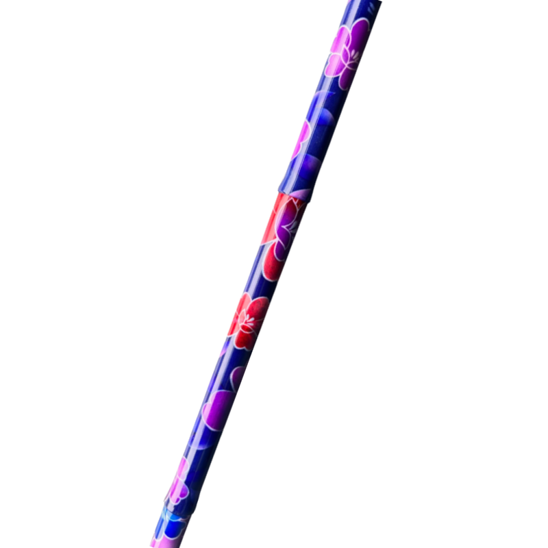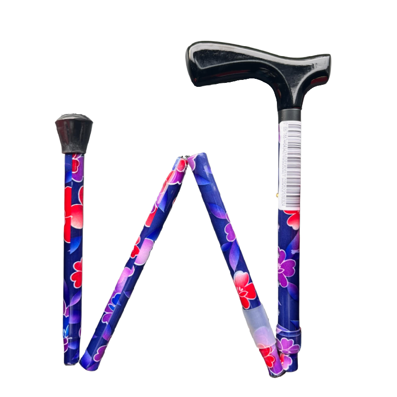 De Opvouwbare wandelstok Gebloemd Paars- Premis is een slanke wandelstok (16mm) gemaakt van aluminium. Eenvoudig op te vouwen en op te bergen. Inclusief plastic opbergtasje.
