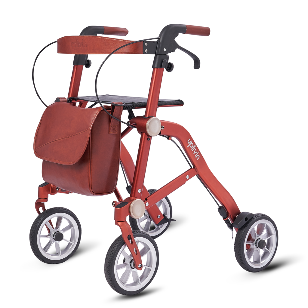 Deze rollator van Uplivin is elegant, sterk, wendbaar en gemakkelijk op te bergen. Wat wil je nog meer? Een unieke lederen tas, lederen rugleuning en stokhouder misschien? Deze accessoires worden namelijk standaard geleverd bij de Trive rollator. Hierdoor kan deze fijne rollator van Uplivin worden gezien als een echte allround en all-inclusive rollator!