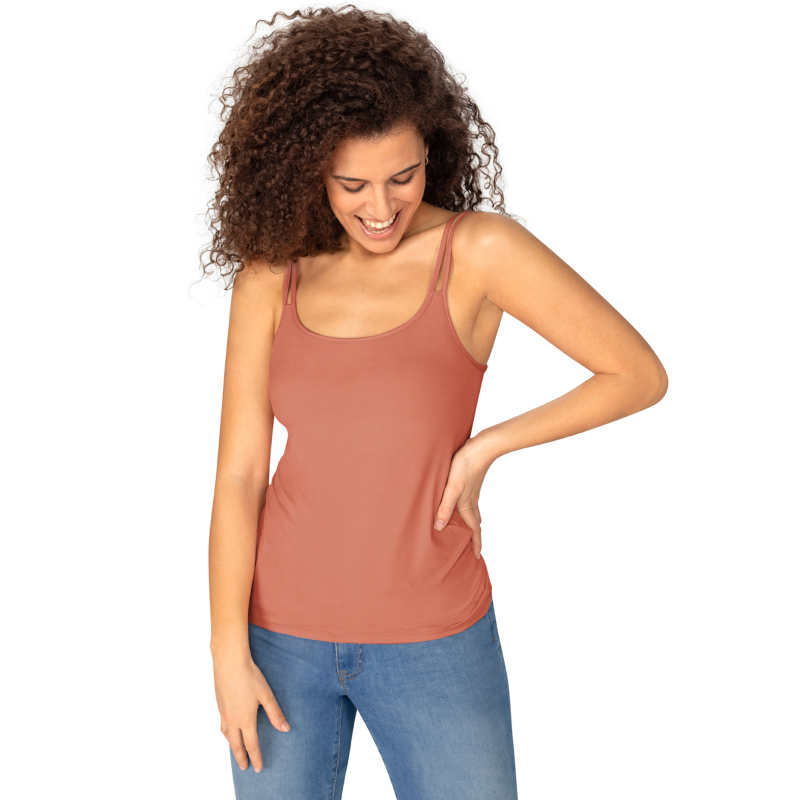 Dit is de eerste mastectomie top met een geïntegreerde beha en super zachte hoesjes, zodat je jouw borstprothese of shaper rechtstreeks in de top kan dragen. Je hebt dus geen extra bh nodig waardoor de dubbele spaghettibandjes van deze top de show kunnen stelen.