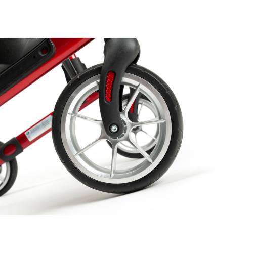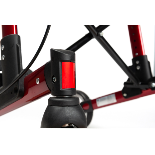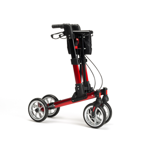 De super handig opvouwbare rollator is verkrijgbaar in de kleuren rood en antraciet.