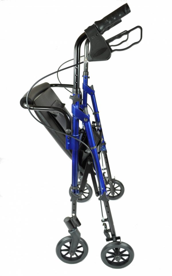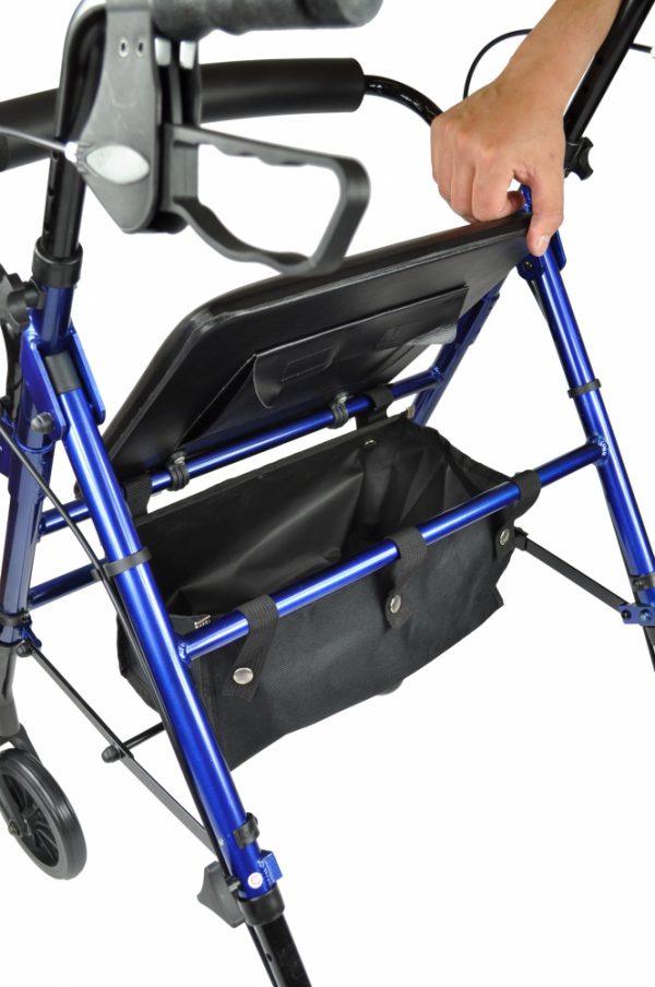 Een lichtgewicht aluminium rollator waarmee u makkelijk kunt manoeuvreren. De zitting kan op drie hoogtes ingesteld worden afhankelijk van de lengte van de gebruiker. Remmen kunnen op slot gezet worden zodat de gebruiker veilig kan rusten in zittende of staande positie.