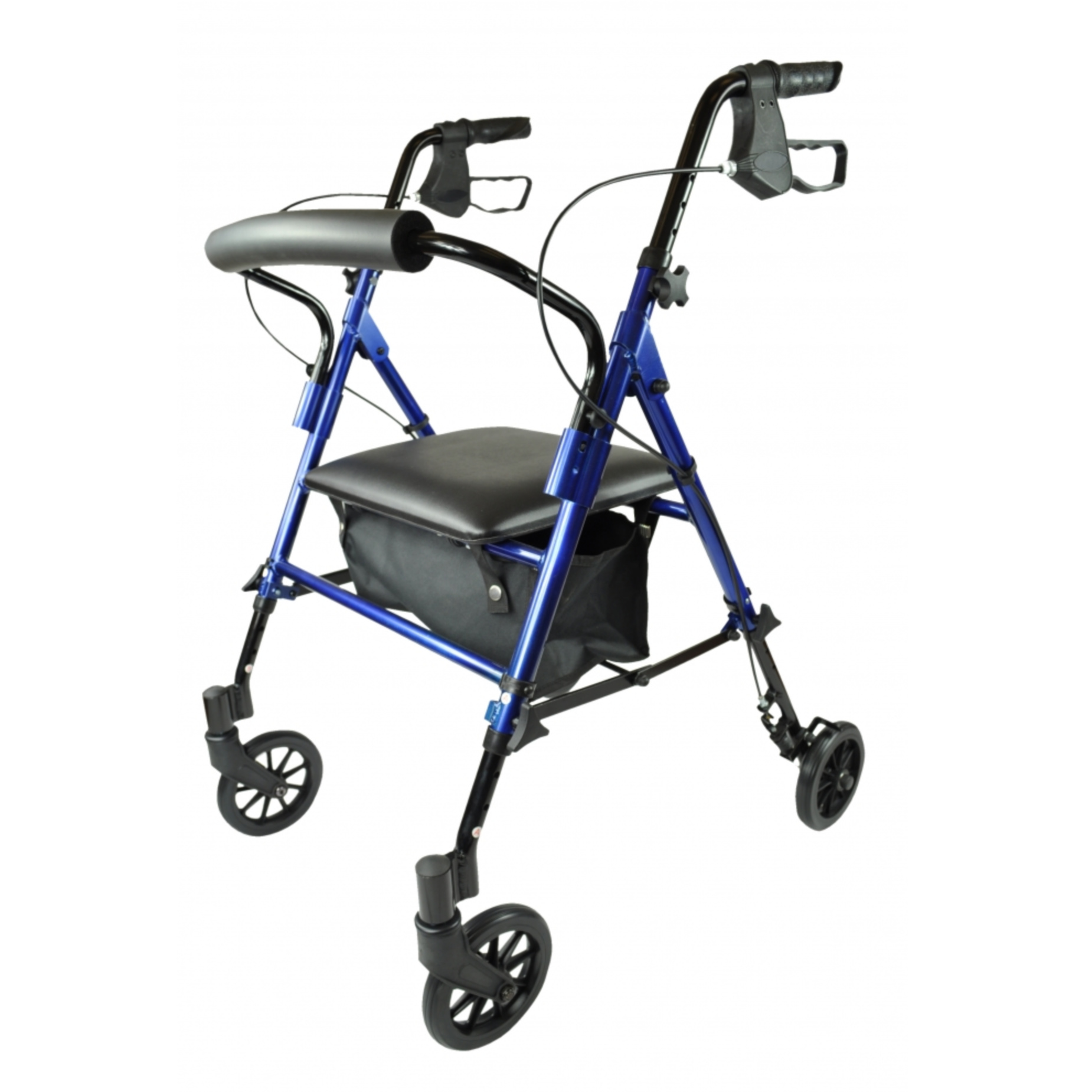 Een lichtgewicht aluminium rollator waarmee u makkelijk kunt manoeuvreren. De zitting kan op drie hoogtes ingesteld worden afhankelijk van de lengte van de gebruiker. Remmen kunnen op slot gezet worden zodat de gebruiker veilig kan rusten in zittende of staande positie. Eenvoudig in te klappen. Handgrepen zijn in hoogte verstelbaar. Inclusief tas onder de zitting.