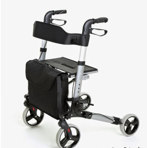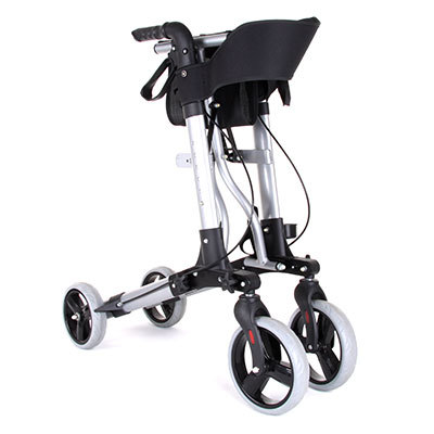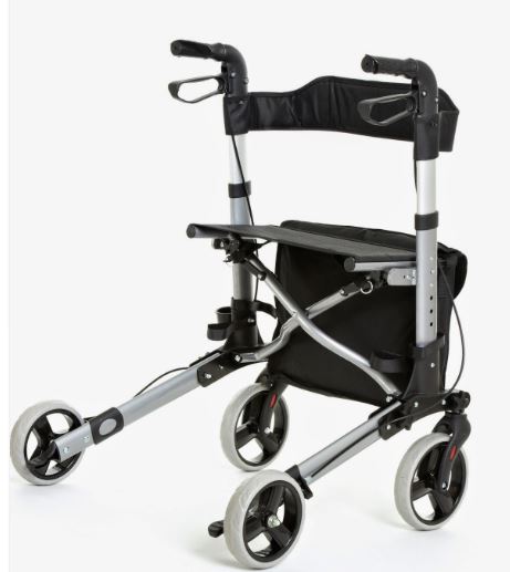 De handvatten zijn ergonomisch gevormd en kunnen eenvoudig in hoogte worden versteld. De rollator kan opgevouwen worden om makkelijk op te slaan of te transporteren.