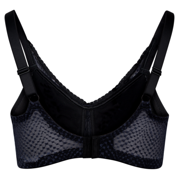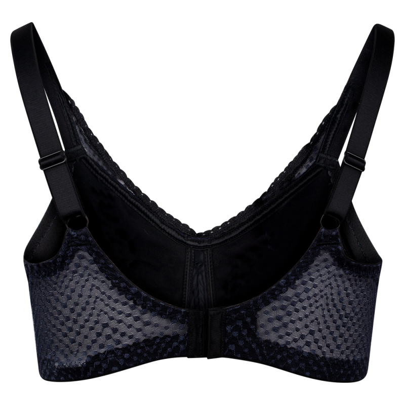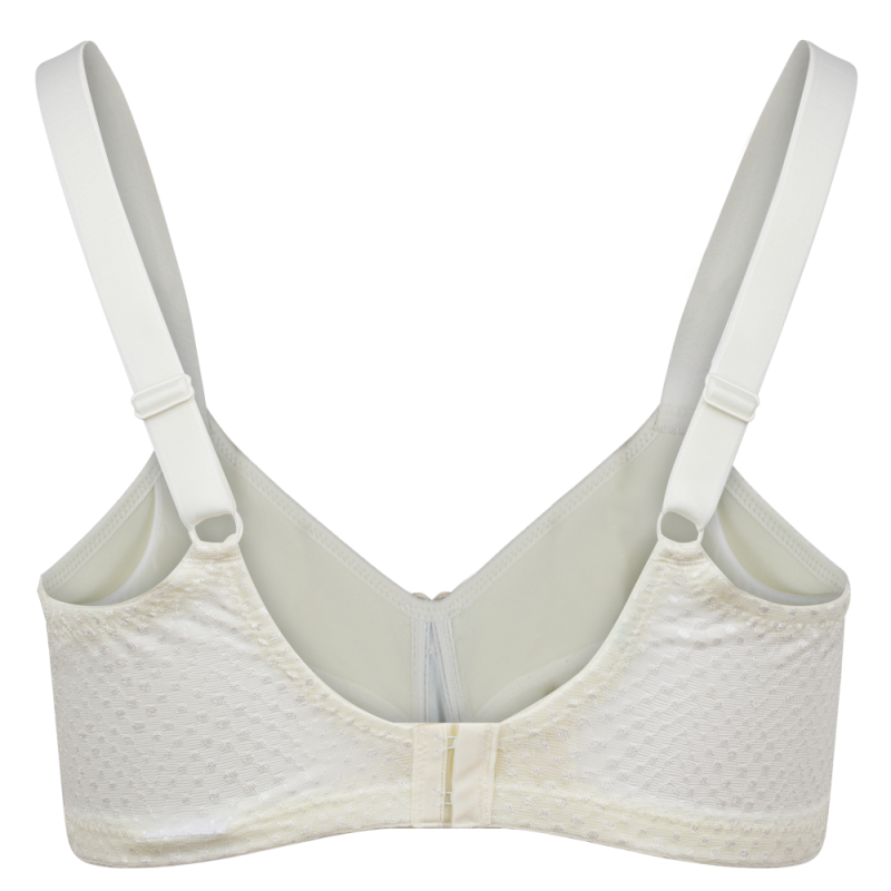 Silima prothesebeha – Eve Lace heeft een mooie transparante rugzijde, is afgewerkt met kant langs het decolleté en in uitgevoerd in een glanzend Jacquard print. Door het kant lang de cups wordt het decolleté mooi afgesloten en is er minder kans op het wijken van de borstprothese.