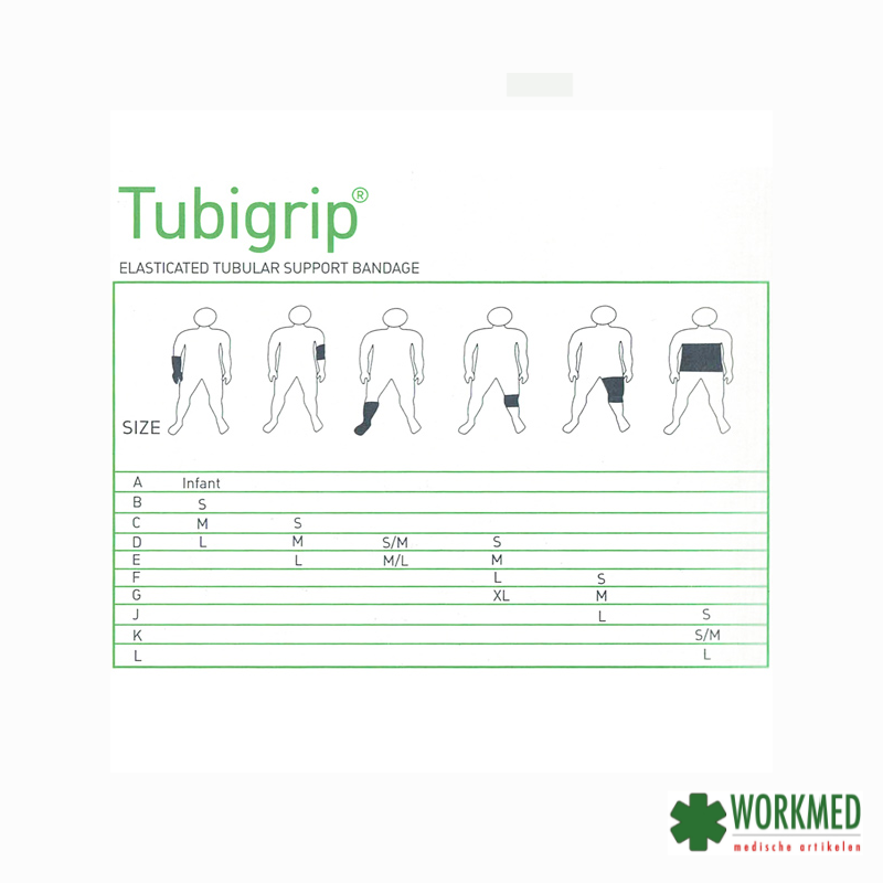 Een druk- en steungevend buisverband dat wordt toegepast bij lichte vormen van oedeem, na gipsbehandeling, bij spataderen en verrekkingen van pezen of banden. Tubigrip knelt niet af omdat de zwachtel zich vormt naar de contouren van het te behandelen lichaamsdeel. Tubigrip wordt dubbel aangebracht en geeft overal een gelijkmatige druk. De juiste maat is met gebruik van de maatstrook exact te bepalen.