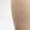 Een witte onderkous van huidvriendelijk materiaal met een lage druk houdt het wondverband vast op het been. Daarnaast beschermt deze kous de gevoelige huid tegen irritatie. De beigekleurige bovenkous kunt u er vervolgens gemakkelijk overheen aantrekken. Het geruite breiwerk oefent de noodzakelijke druk uit. Daarnaast maakt dit patroon het aan- en uittrekken makkelijker.