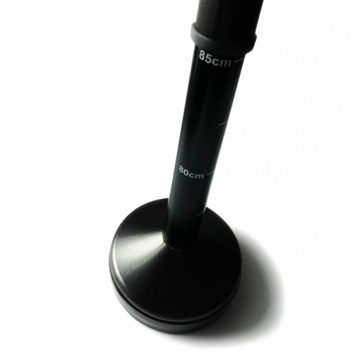 De stok is in te stellen aan de hand van een draai schuif systeem aan de onder zijde van de stok. Deze revolutionaire wandelstok kent zes standaard lengtes: